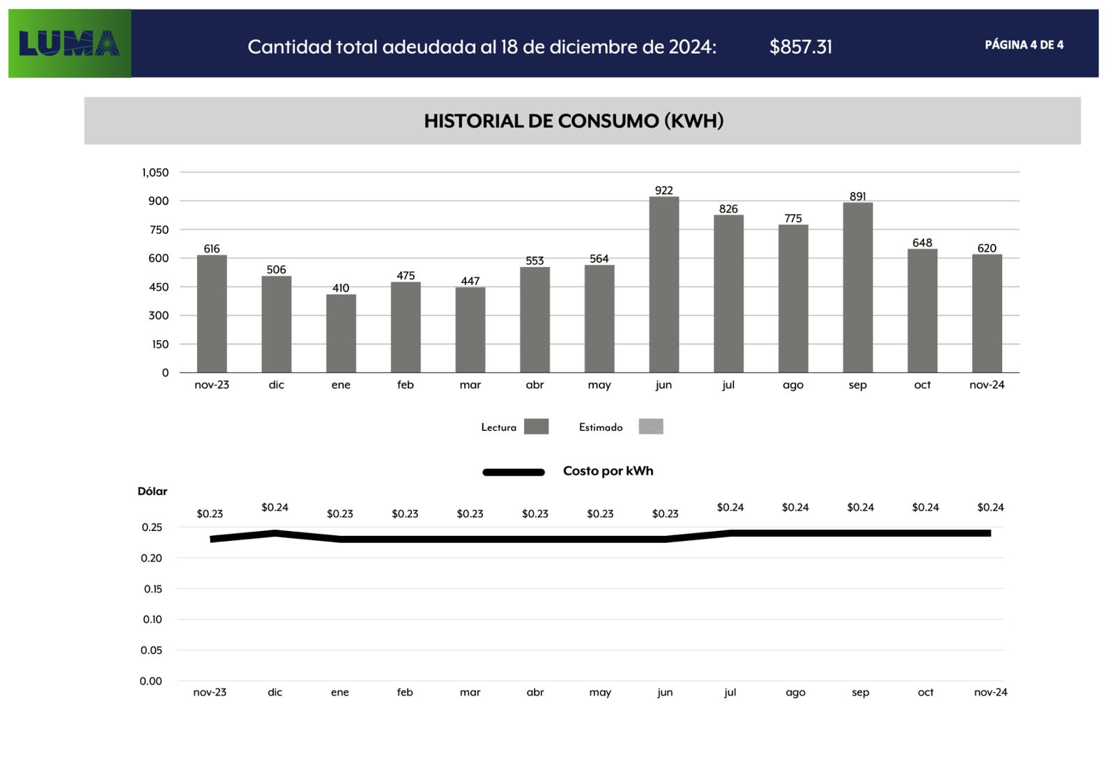 Solo necesitas la página 4 de tu factura de LUMA para calcular tu Sistema Solar.